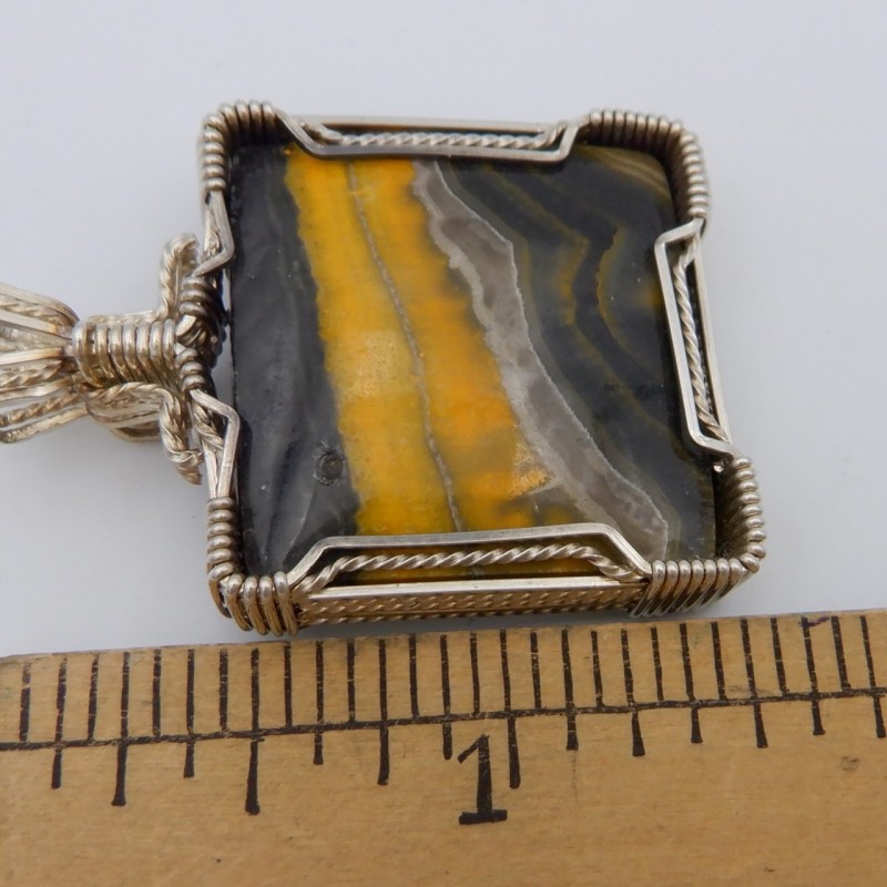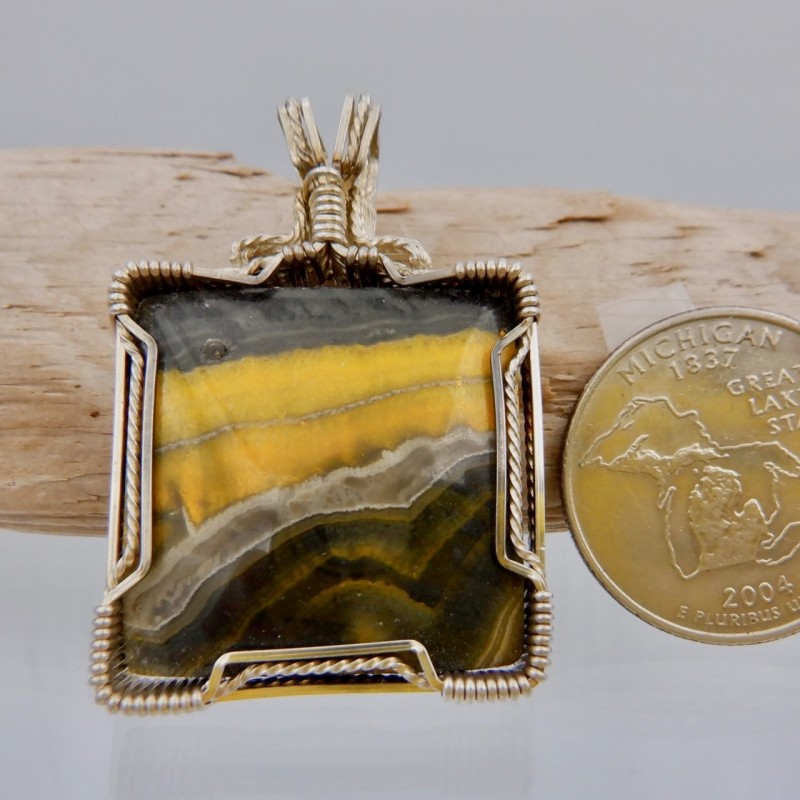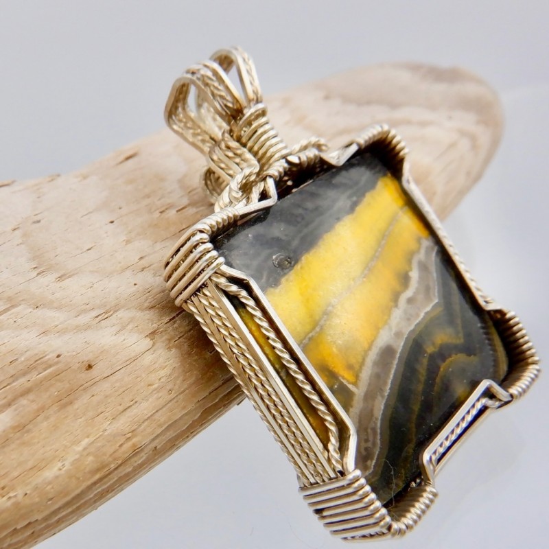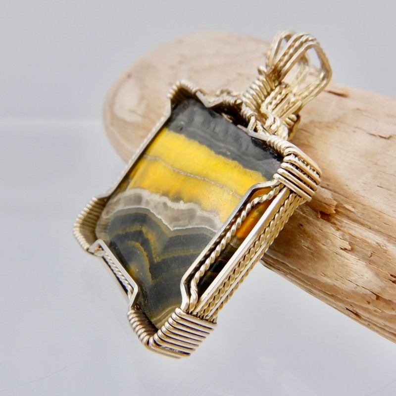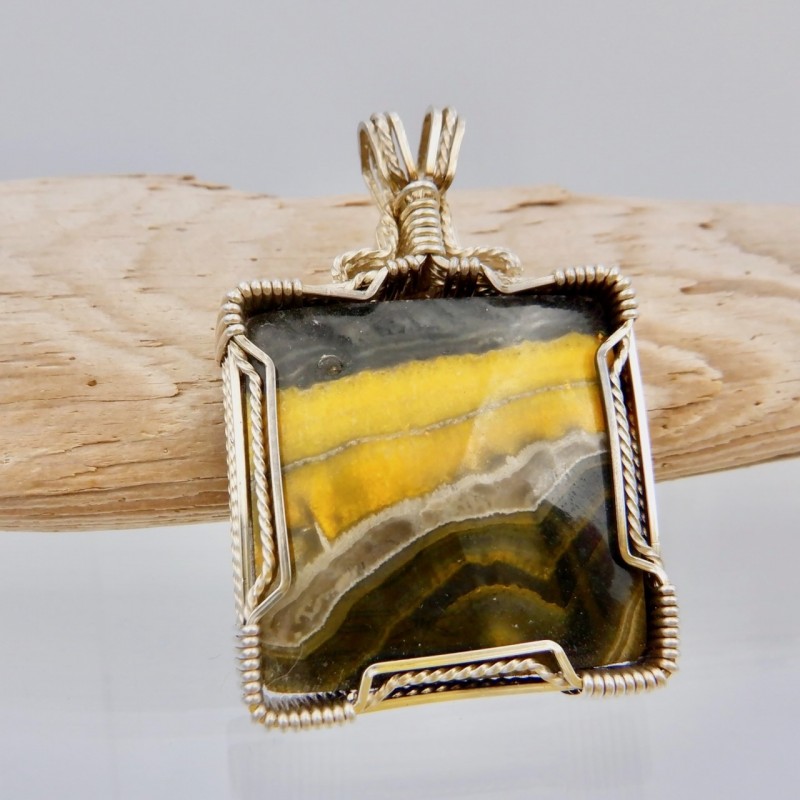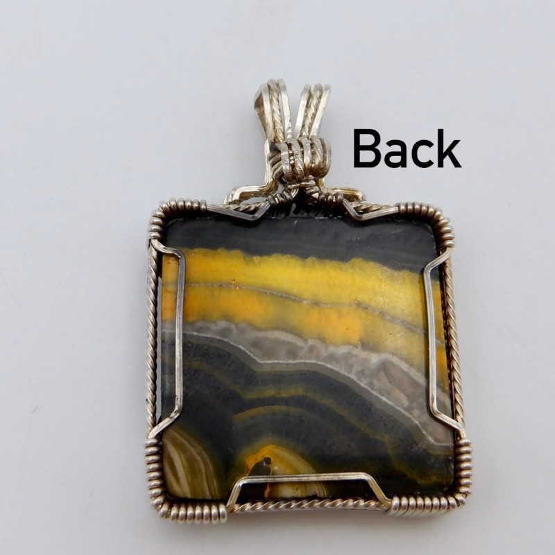 Natural colors of yellow and black might remind you of a Halloween night! Or you might just love the big pollen-hungry bees that visit your flowers! You'll love wearing this bright pendant with rare stone colors.