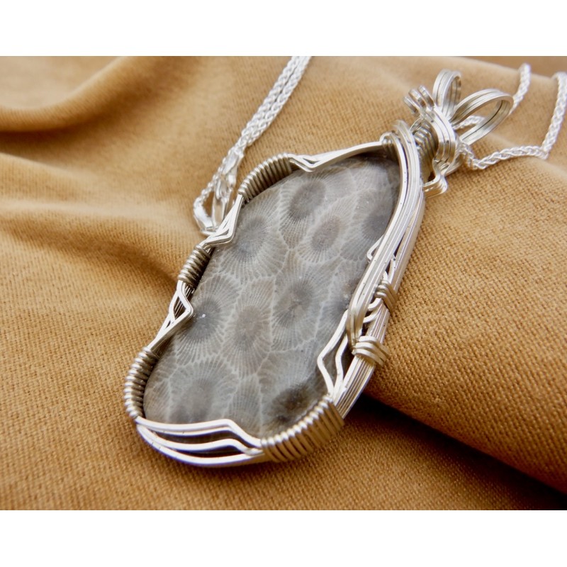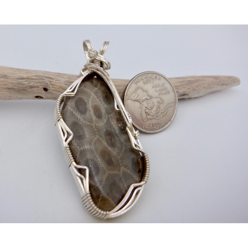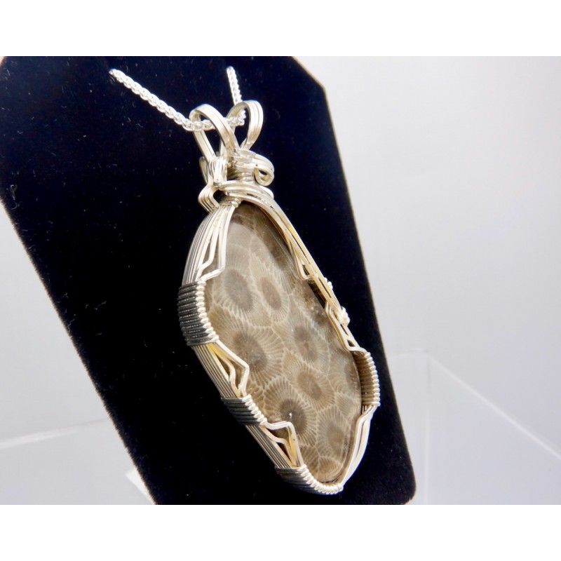 Petoskey stone jewelry is very popular in our part of Michigan, but we send them all across the country to people who recall hunting for them on a beach. This is a larger, longer pendant, with great visual contrast, fun to wear, and a chance to share the story of Michigan's State Stone!